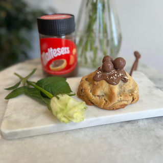 This Malteser cookie has a soft vanilla base bursting with chunks of Malteser bar throughout, which delivers a satisfying crunch and a sweet chocolatey maltiness. At the centre is a slightly crunchy, delicious Malteser spread filling, making this cookie a firm favourite!